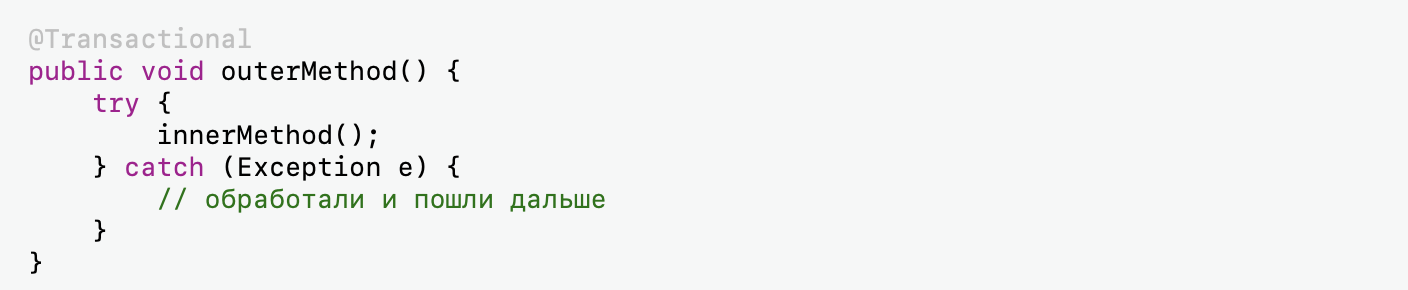 Но даже если ты всё сделал правильно с точки зрения rollback, можно столкнуться с менее очевидной проблемой: rollback-only состоянием транзакции.